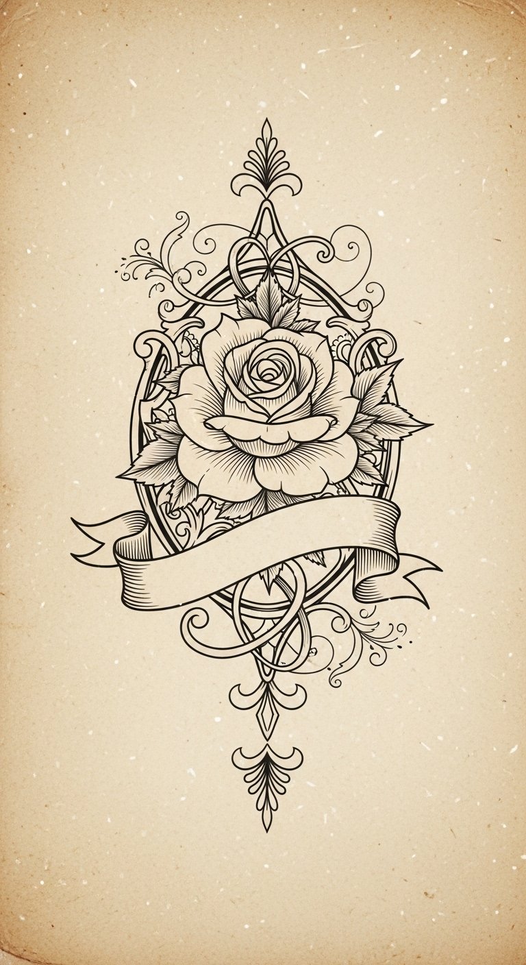 Whether it’s a delicate rose or an ornate frame, each tattoo whispers a tale of history, inviting you to wear your passions boldly. The rose symbolizes enduring love and personal growth, the frame suggests a preserved memory, and the classic typography anchors identity; together they evoke wistful nostalgia and quiet confidence—ideal on the forearm for daily visibility, the chest for intimate meaning, or the shoulder as a statement piece.