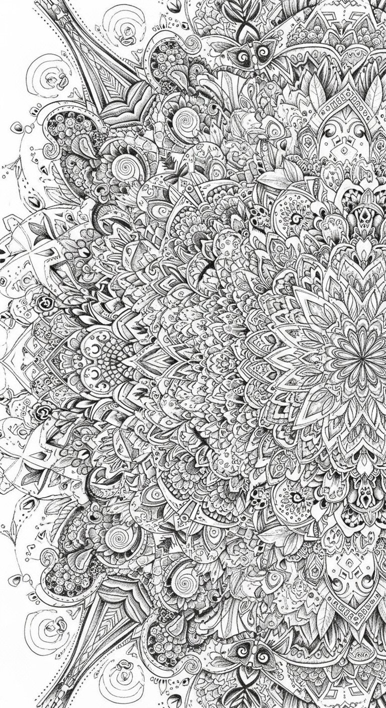 This tattoo concept uses the original passage as the visual blueprint: a central, circular mandala built from interlocking layers of lace-like filigree and geometric petals, with delicate dotwork and fine linework radiating outward to form a halo that fades into subtle negative space. Symbolically it represents balance, inner calm, and the transformation of personal emotion into art; the intricacy invites meditation and sustained attention, while customizable elements (small symbols or initials hidden in the pattern) let the wearer infuse personal meaning. Ideal placements include the upper back or sternum for a centered, intimate statement, or the forearm for a visible reminder of creativity and serenity.