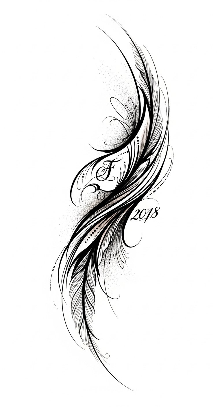 The suggested composition blends bold and delicate elements to symbolize strength balanced with vulnerability; the hidden personal emblem makes the piece intimate and meaningful, while stippling and filigree evoke memory and continuity.