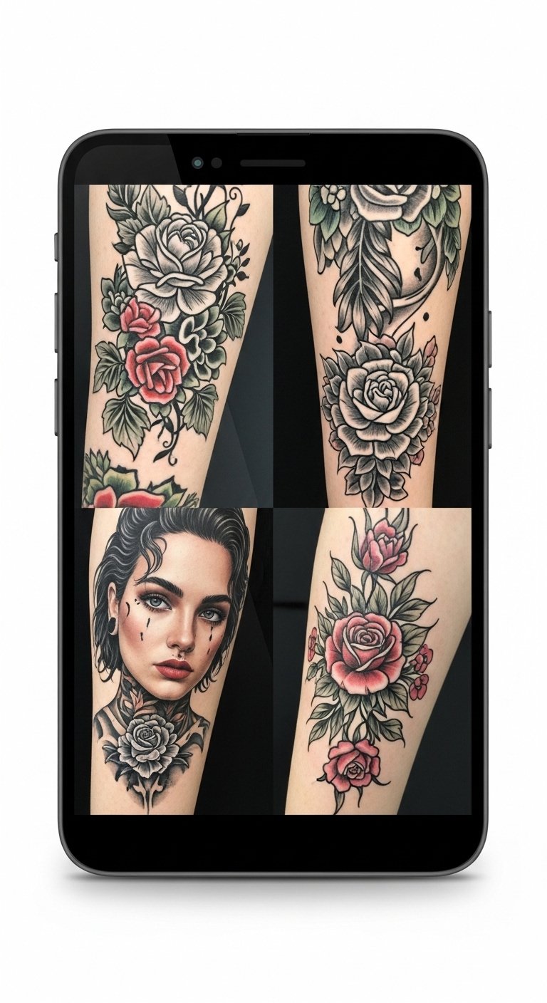 Emotionally it reads as confident, inviting, and proud; best placed as a full or half sleeve on the forearm or upper arm where its flow can engage viewers in the same way a mobile display attracts attention, or along the ribcage for a large, immersive canvas.