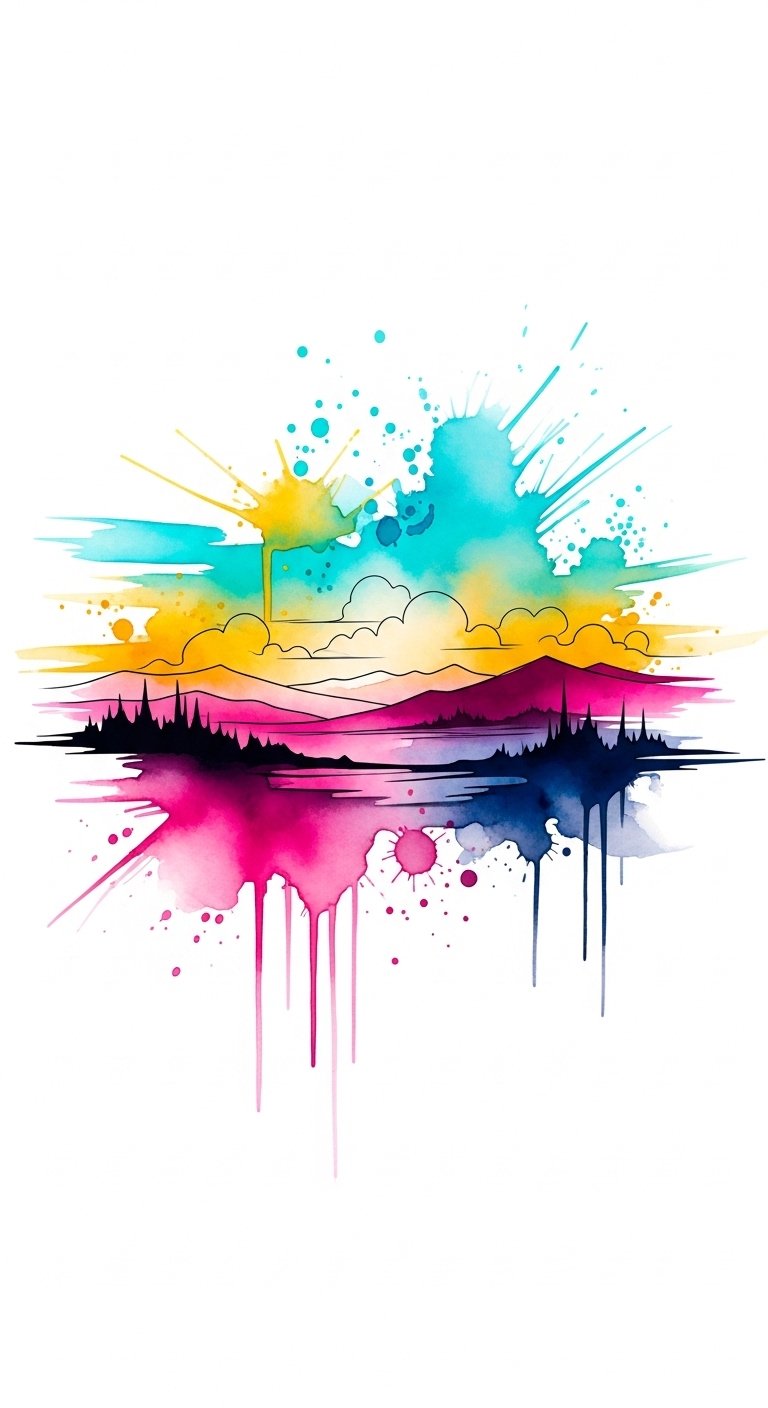 This tattoo concept symbolizes transformation and creative liberation—the fading of myths into lived experience and the embrace of vivid, present-moment beauty. The flowing horizons and splashes express movement, optimism, and emotional expansiveness; the translucent washes allow skin to breathe within the composition, representing vulnerability turned into art.