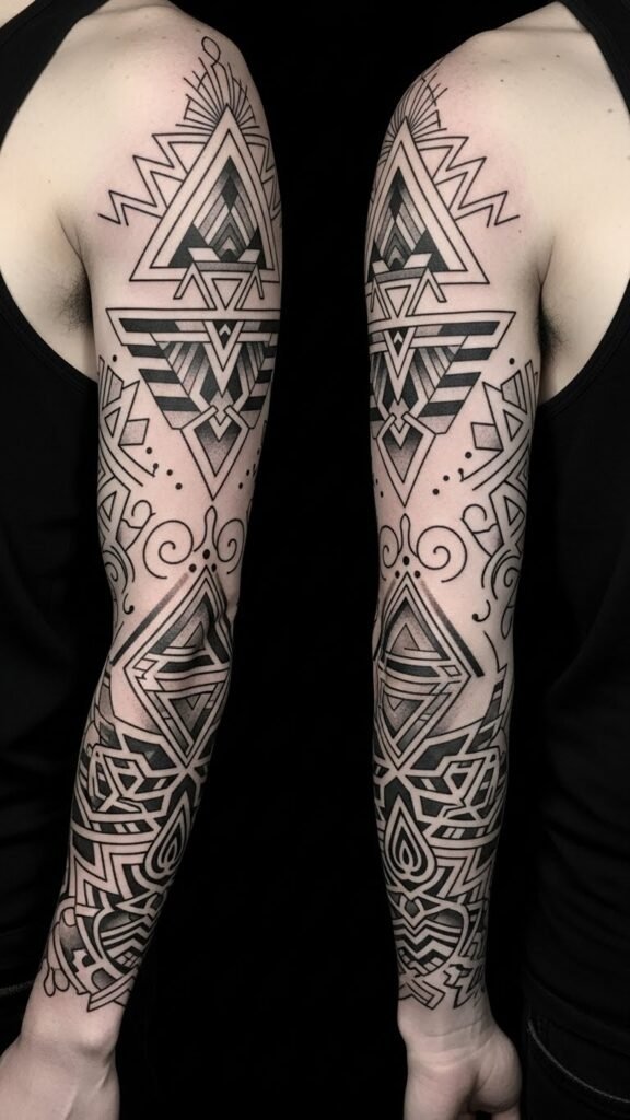 While triangles and repeating patterns might seem simple at first glance, they hold a mesmerizing power that can transform your tattoo sleeve into a stunning visual narrative.