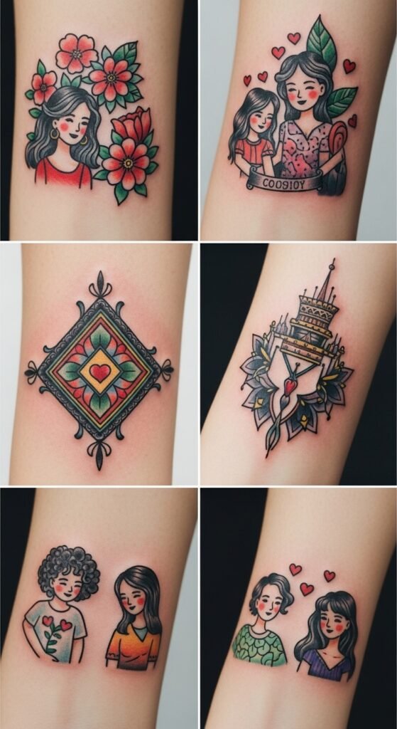 Each tattoo concept draws on the original text’s focus on expressive artistry and shared family creativity, using bold outlines and lifelike shadows to create depth while vibrant colors and intricate techniques celebrate individuality and freedom; placed on wrists, ankles, or behind the ear, these small matching pieces foster connection through visible yet personal spots that evoke emotion, commemorate bonds, and invite playful self-expression.