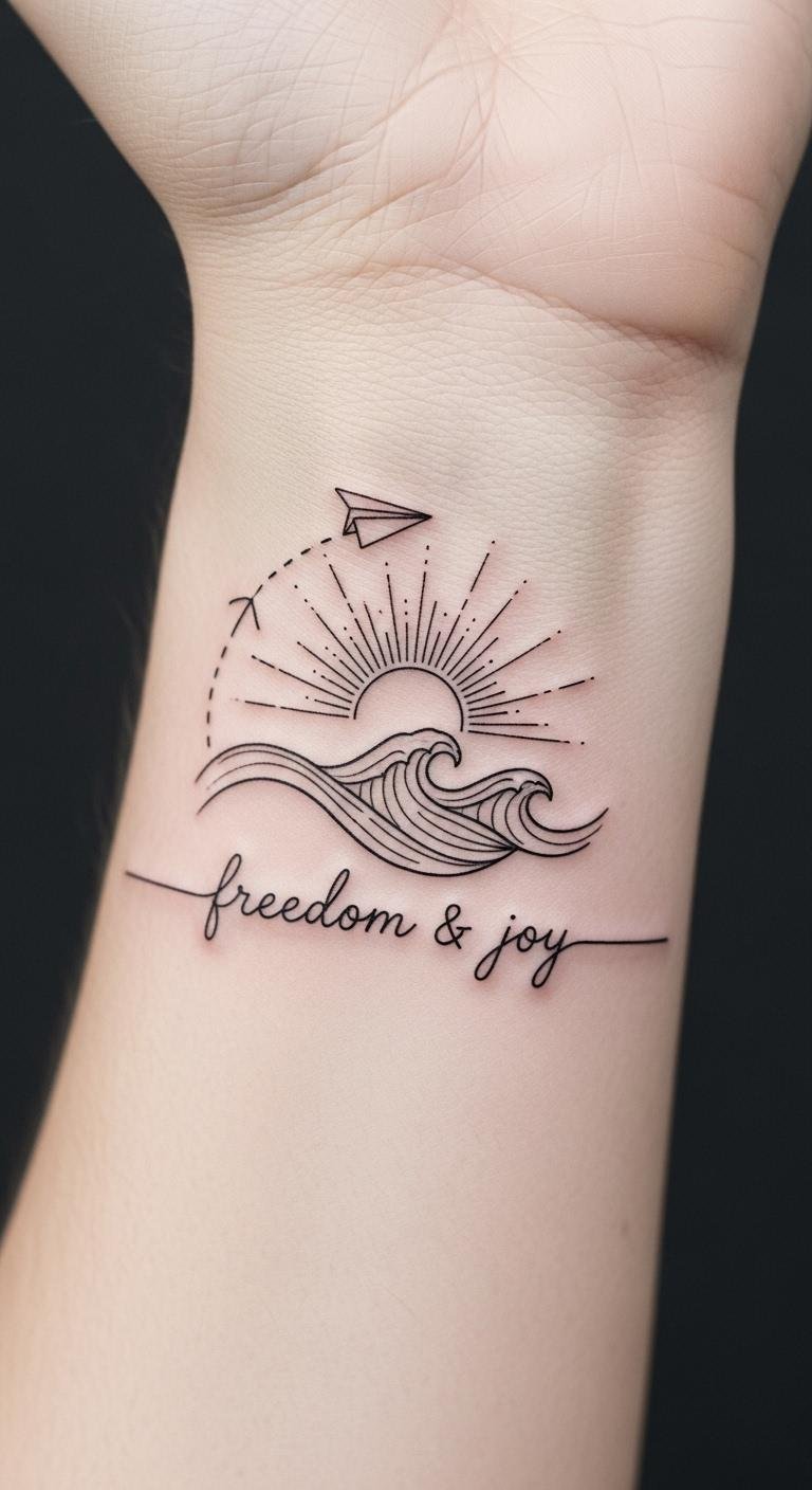 Intended for the inner wrist or along the forearm, the fine-line style keeps it subtle and wearable, evoking nostalgia without overpowering—meant to trigger fond recollection of freedom and joy whenever seen.