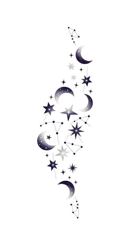 Embrace celestial symbolism with temporary tattoos that feature stars and moons, transforming your skin into a canvas of cosmic artistry.