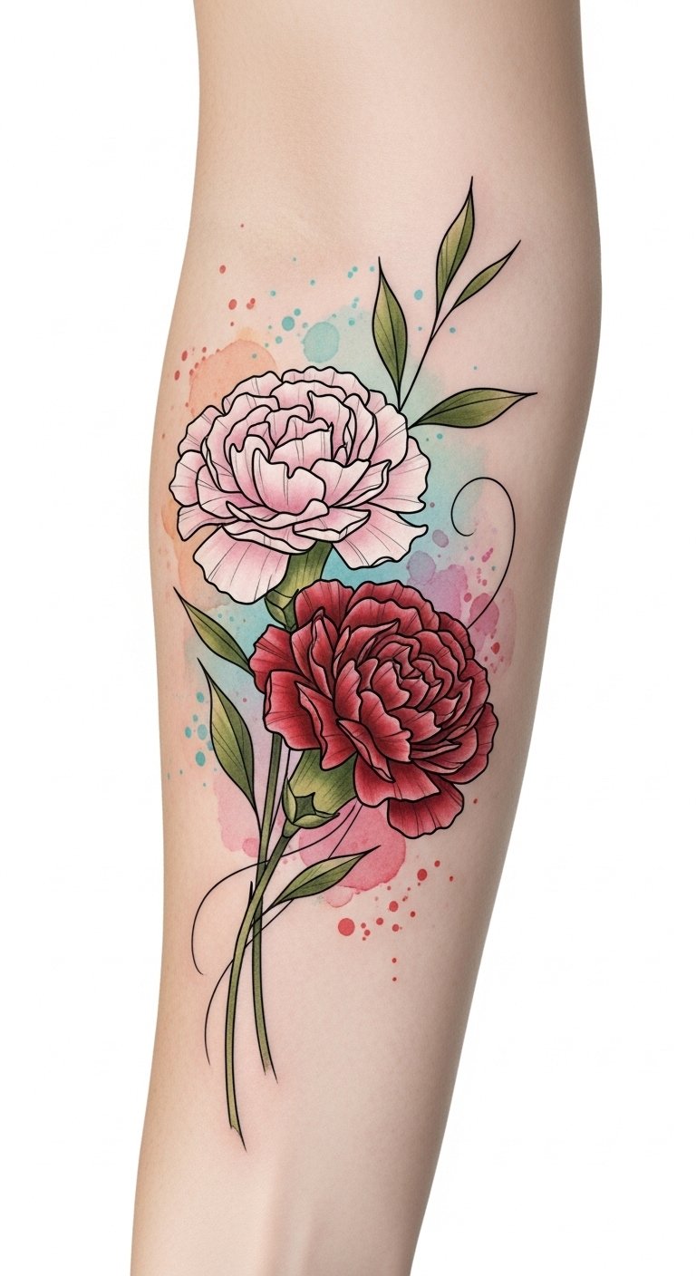 While exploring the vibrant world of flower tattoos, you might find yourself captivated by carnation tattoos, which are rich in symbolism and color. Each carnation color holds a unique meaning; for instance, pink symbolizes a mother’s love, while red represents admiration.