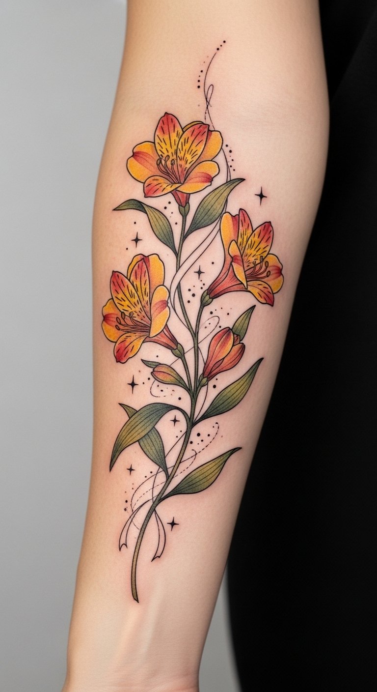 Imagine intricate alstroemeria designs weaving stories of loyalty and joy, celebrating the bonds you cherish. A tattoo like this not only beautifies but also expresses your spirit of connection and freedom.