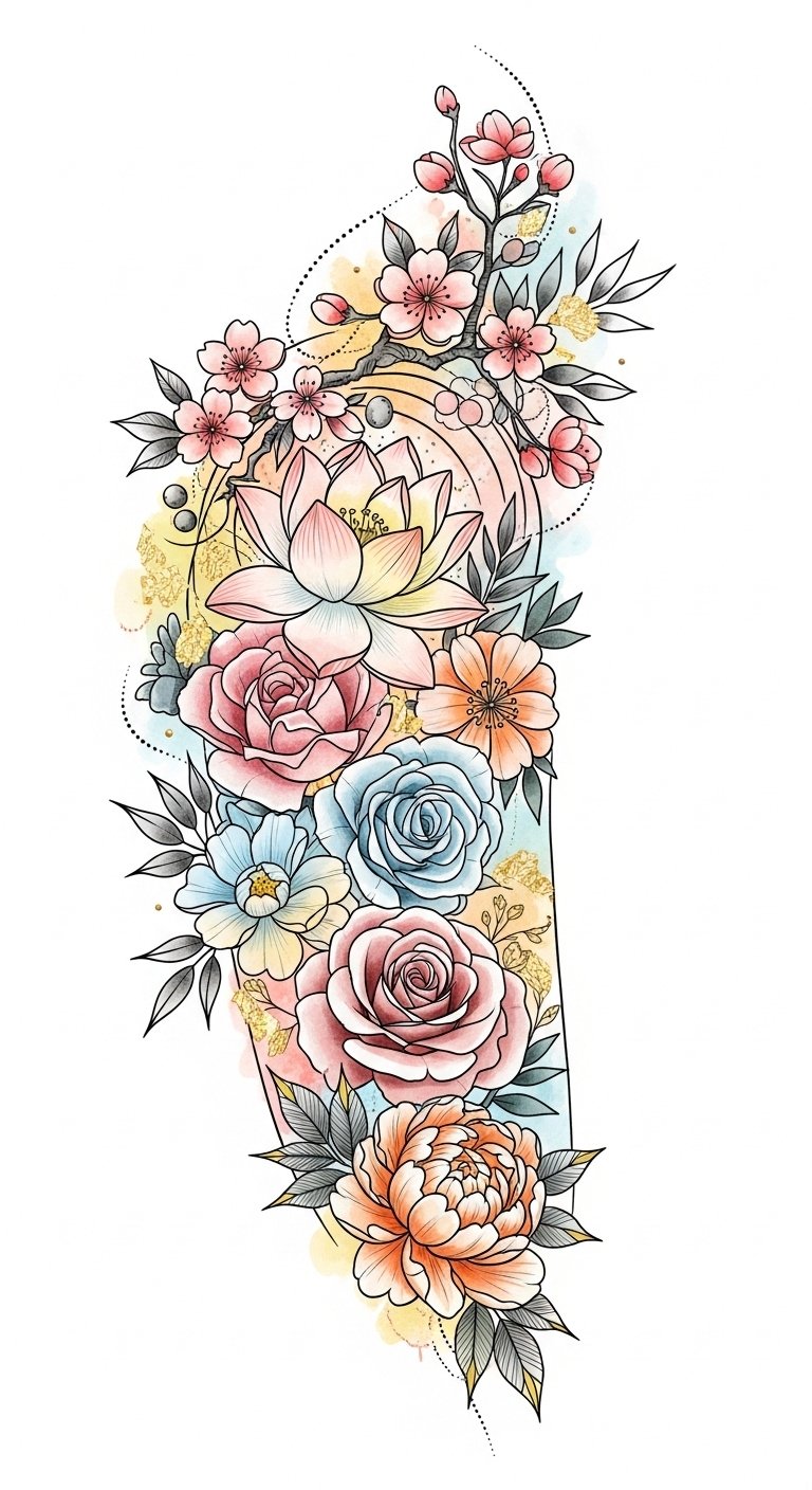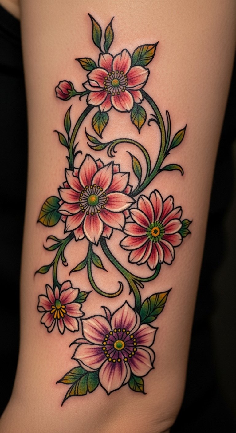 These vibrant designs often symbolize growth, love, and resilience, deeply rooted in tattoo traditions. Each flower carries a story, reflecting the beliefs and values of different cultures.