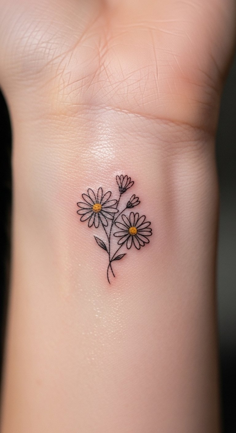 Daisy tattoos bloom with a charm that captures the essence of innocence and purity, making them a beloved choice for many. These delicate designs symbolize new beginnings and hope, reflecting your free spirit.