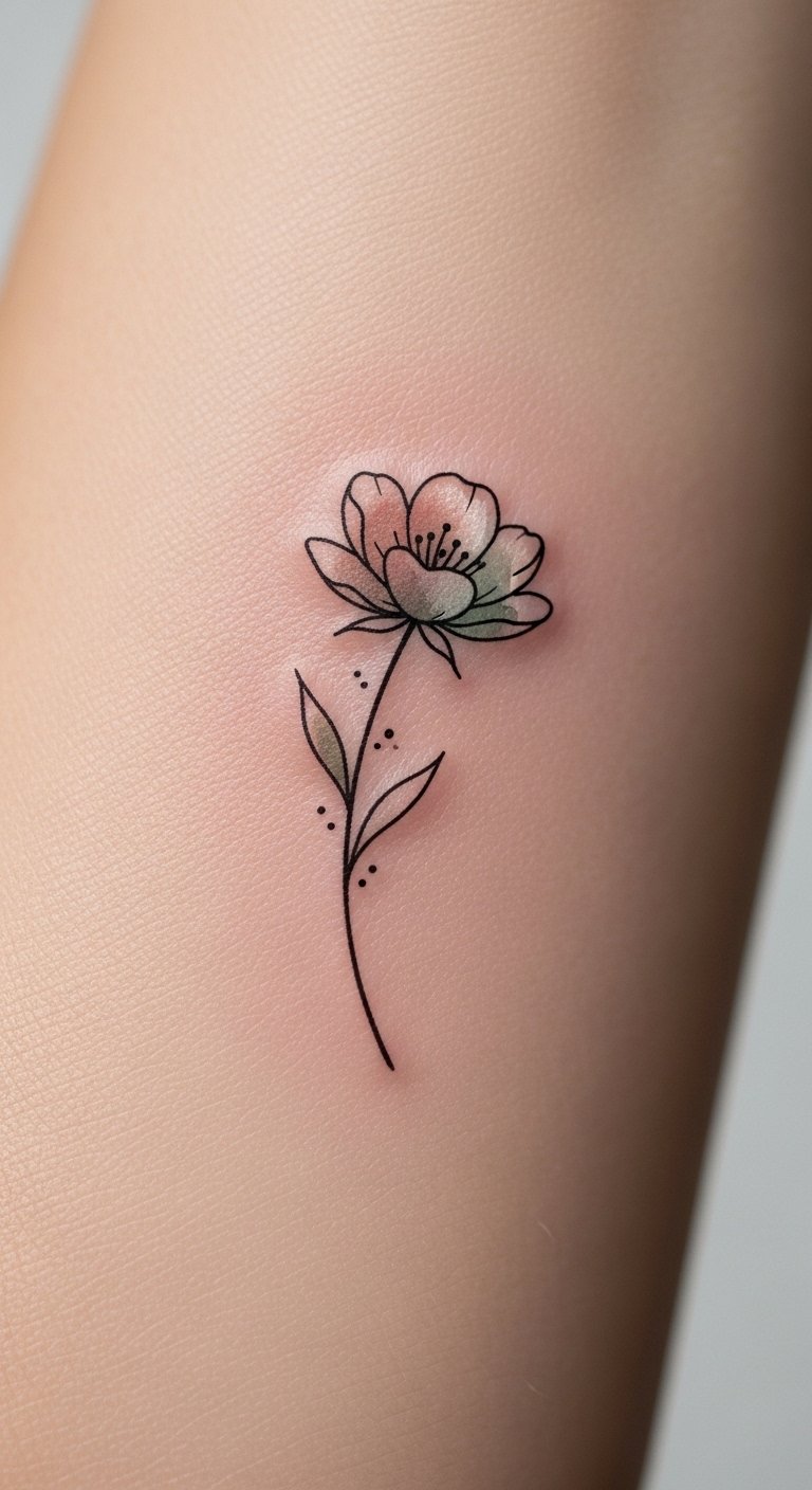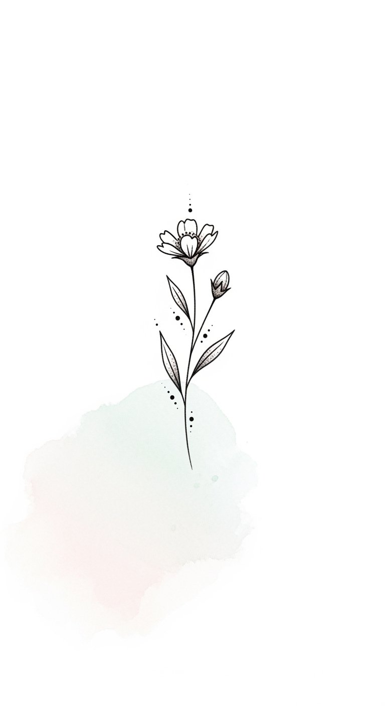 The tiny blossom symbolizes growth, quiet resilience, and personal elegance; its minimalist execution evokes calm and refined taste, while the muted watercolor hints at gentle emotion.