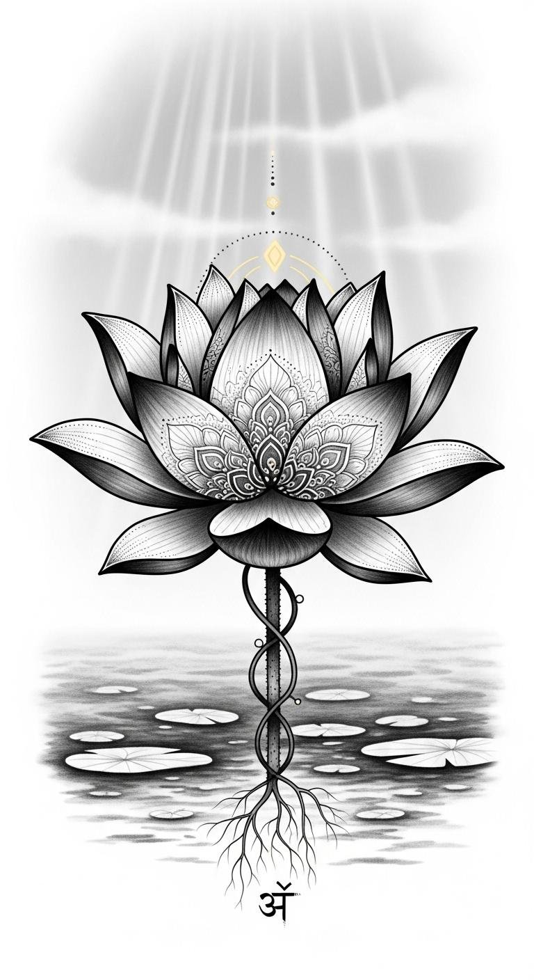 This design emphasizes resilience and emerging light—soft rays and mist convey serenity, mandala petal patterns add contemplative depth, and the subtle Sanskrit seed syllable anchors cultural mindfulness.