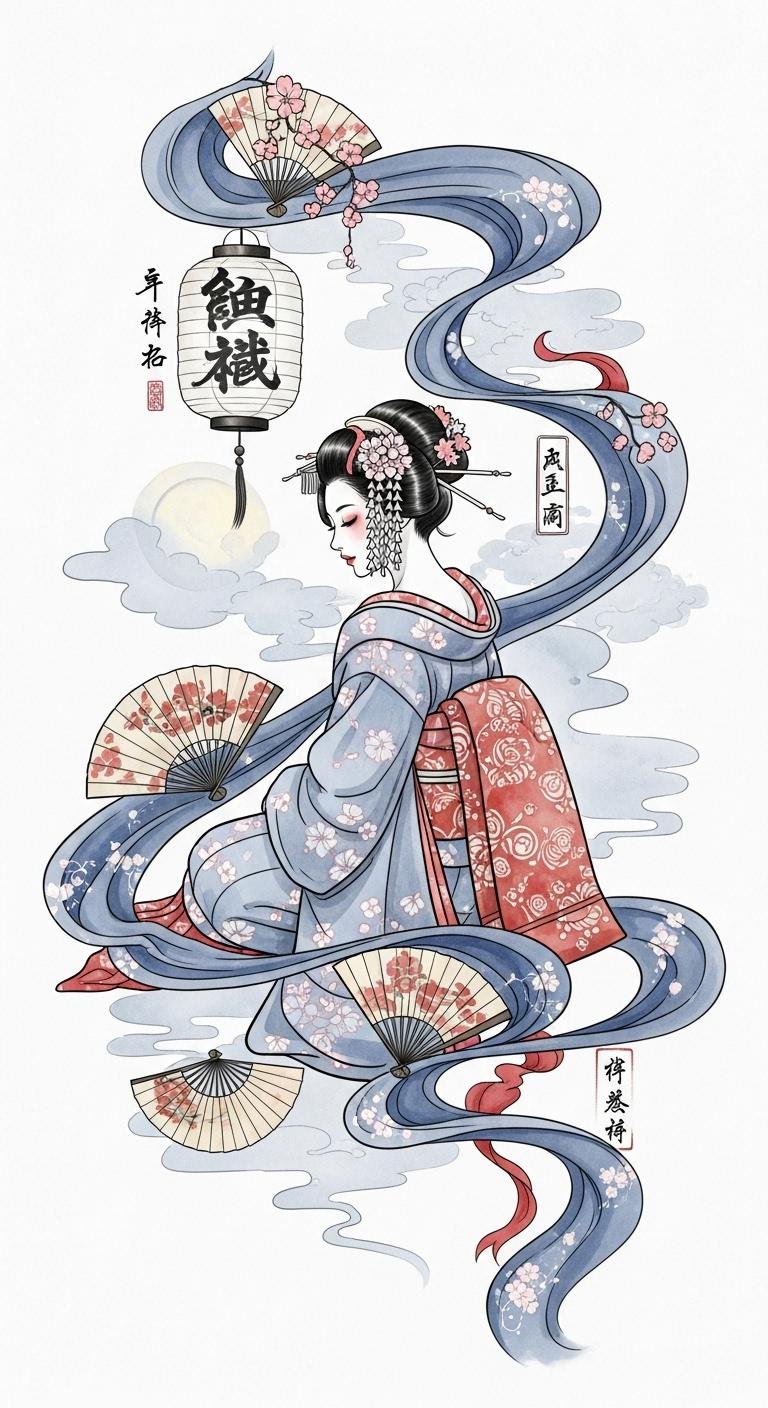 The layered ukiyo-e textures and sakura petals evoke nostalgia and serenity, while crimson and gold accents create warmth and triumph, inspiring confidence and quiet resilience in the wearer.