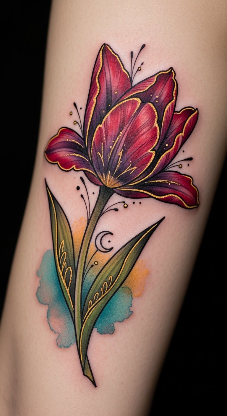The tulip tattoo, with its vibrant colors and elegant shape, captures not just beauty but also deep cultural significance.