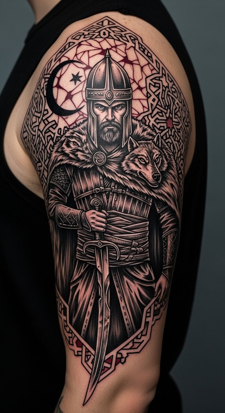 Symbolizing strength and vigilance, the Turkish Wolf stands as a fierce guardian in both folklore and tattoo artistry.