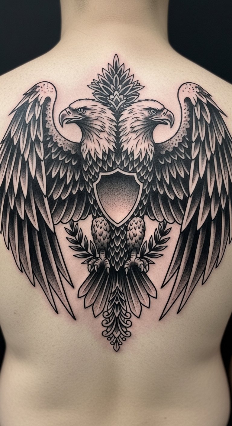 Embodying strength and unity, the Double-Headed Eagle tattoo captures the essence of power and balance.