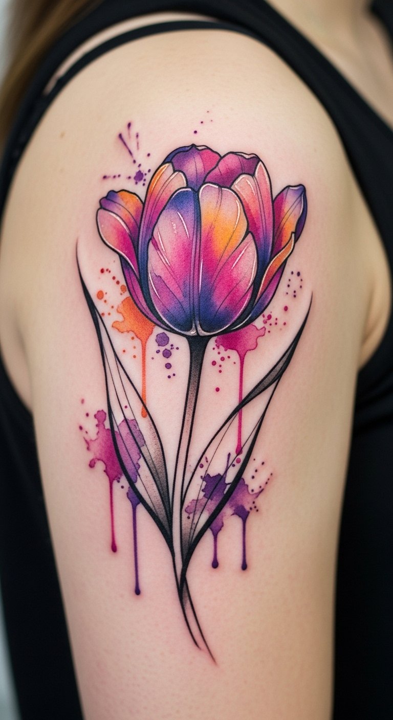 Watercolor Tulip Tattoo: Vibrant and Fluid
