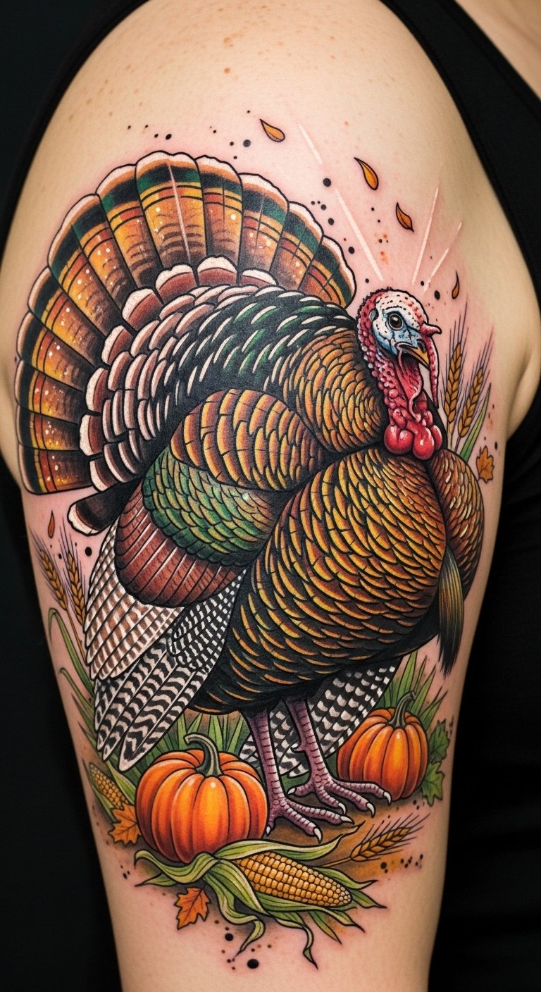 This ink embodies turkey tattoo meanings that reflect prosperity and nourishment. With vibrant colors and intricate details, it symbolizes abundance in your life, reminding you to embrace the gifts around you.
