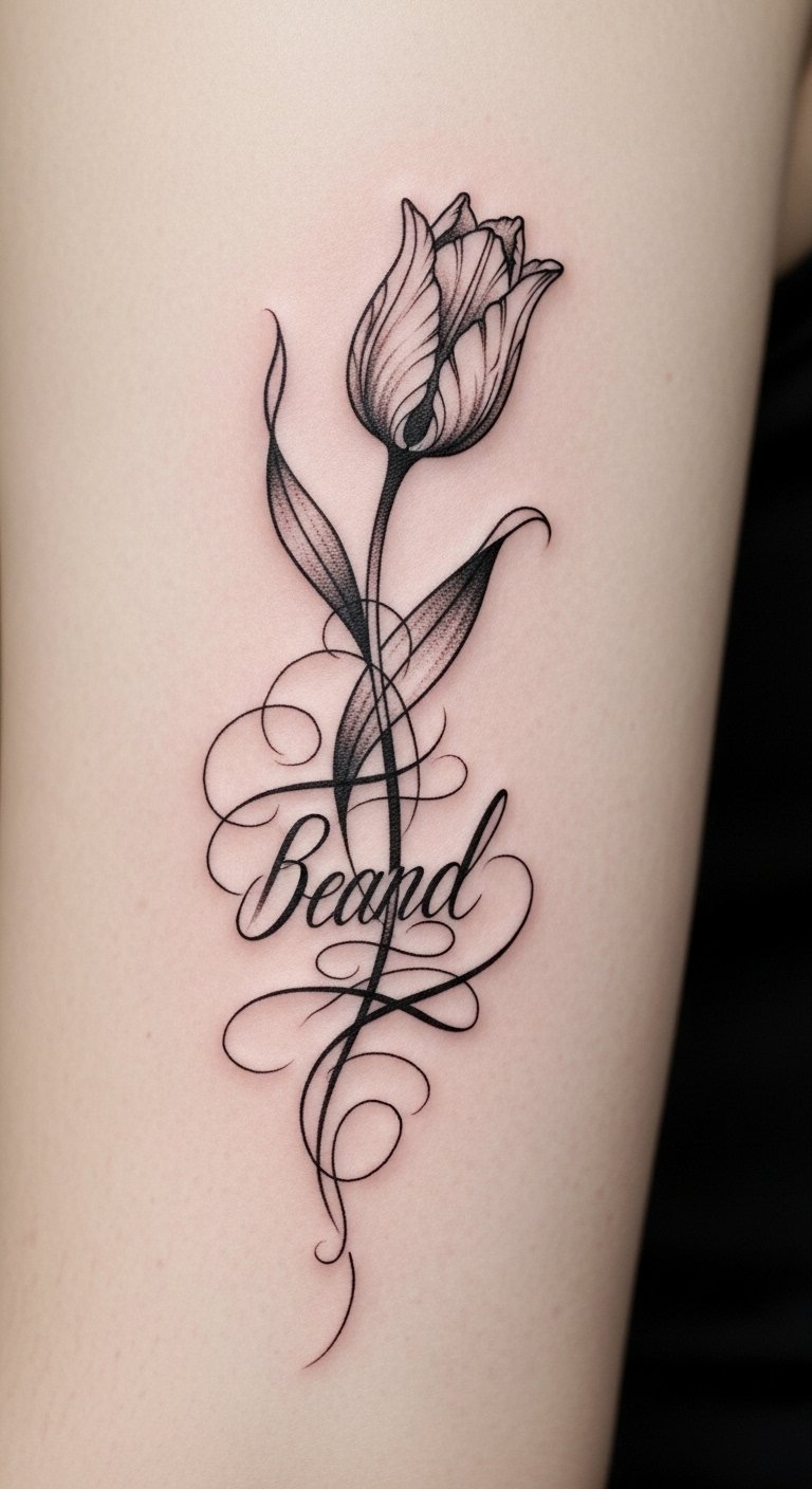 Calligraphic Tulip Tattoo: Poetry in Ink