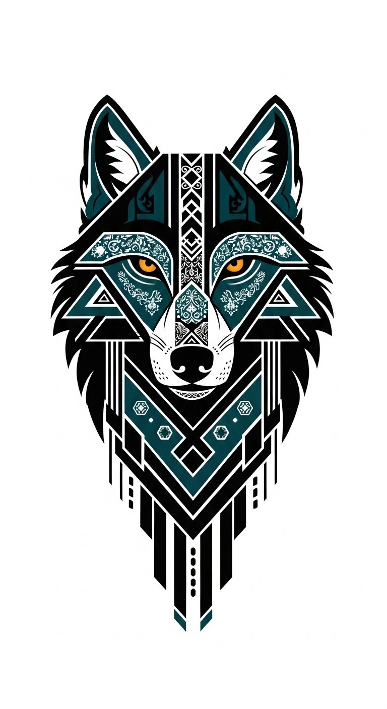 The Turkish wolf adorned with geometric patterns blends cultural heritage and modern aesthetics, symbolizing strength, freedom, and the fierce spirit of the wolf.