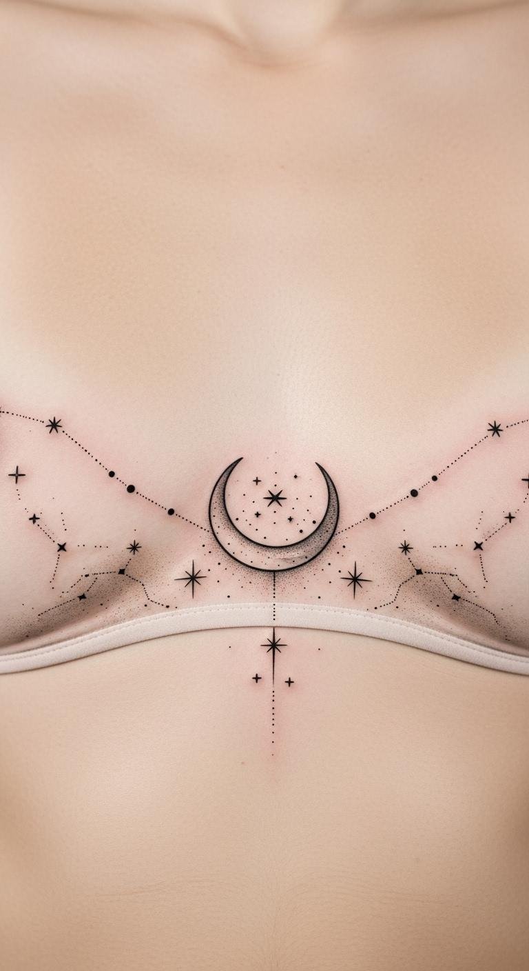 Exploring underboob tattoos reveals not just personal stories but also a canvas for celestial themes that captivate the imagination.