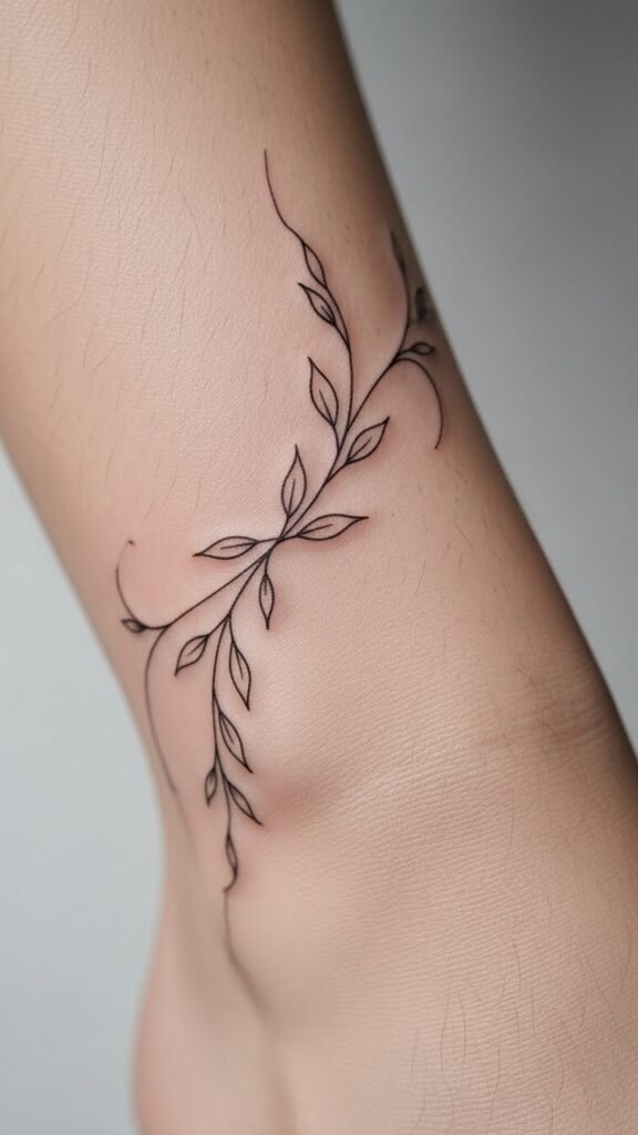 This design symbolizes personal growth, resilience, and a quiet bond with the natural world; its fine lines evoke serenity and grace, making it ideal for intimate placements (wrist, ankle, behind ear) where the motion of the body brings the vine to life and elicits a gentle emotional resonance.