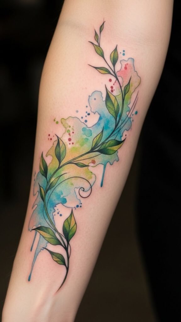 Watercolor vine tattoos breathe life into your ink with stunning watercolor techniques and mesmerizing color blending.