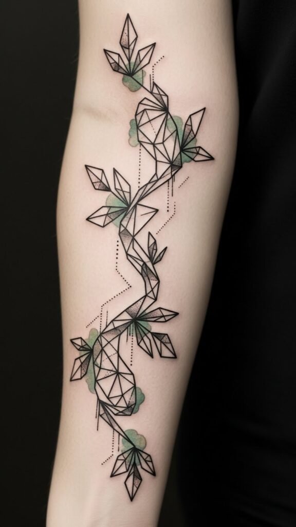 Imagine vines entwining in sharp angles, symbolizing freedom and growth. Each tattoo tells your unique story, merging nature’s beauty with contemporary flair, perfect for those who embrace individuality and artistic expression.