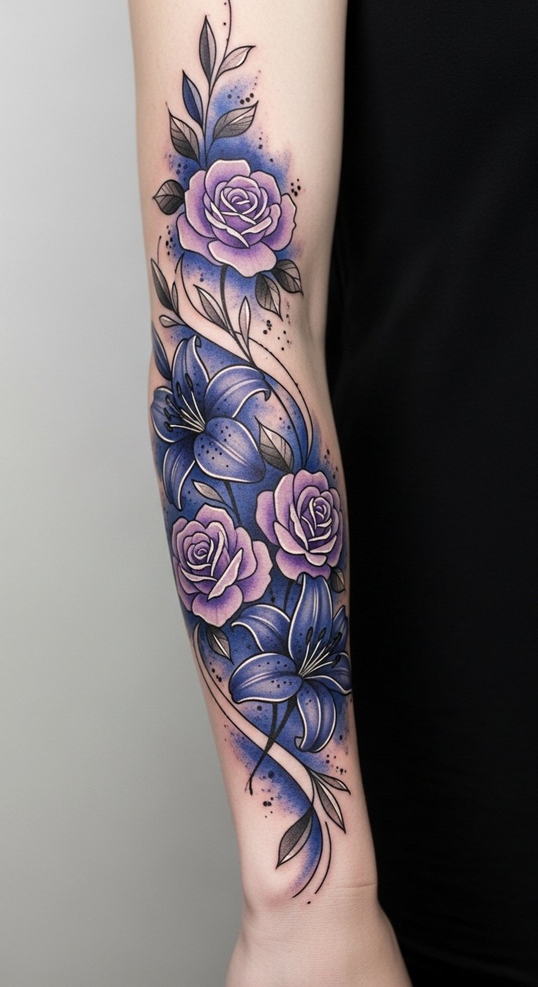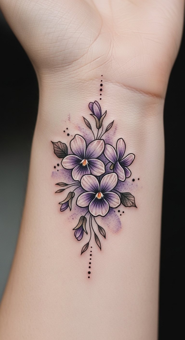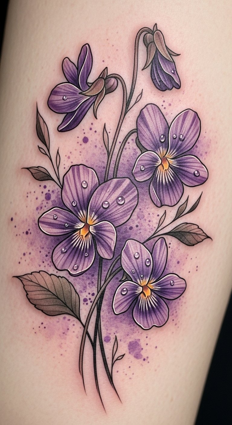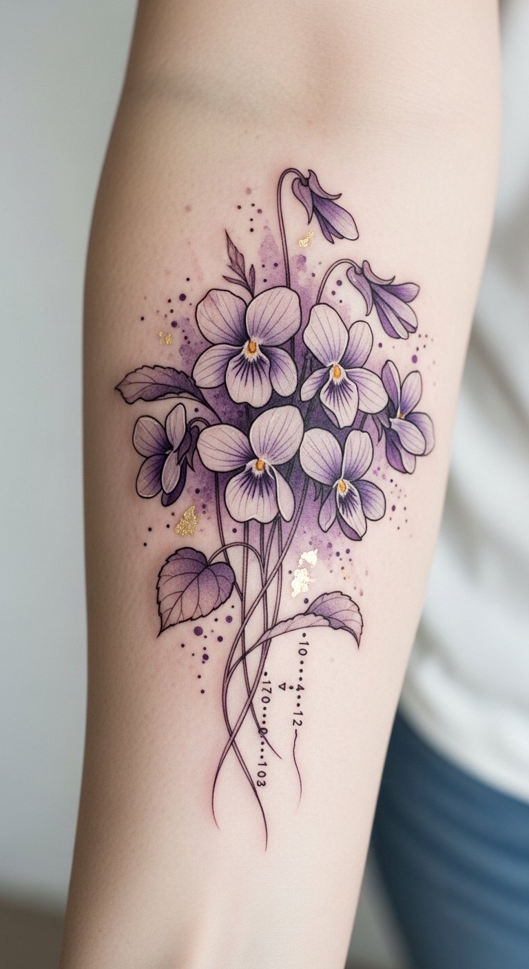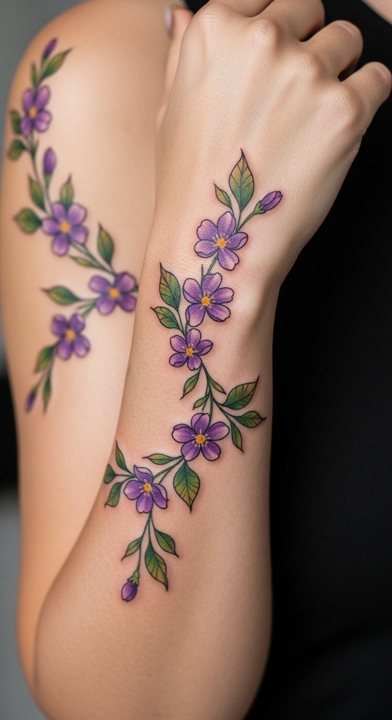 Imagine delicate violets winding around your wrist or blossoming across your shoulder, each petal telling a story of freedom and artistic expression in full bloom.