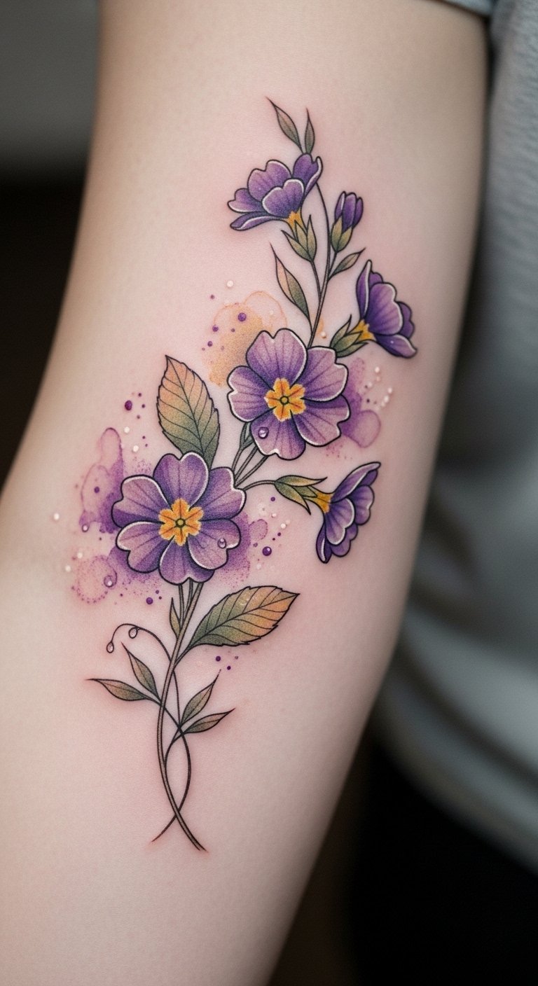 While exploring tattoo artistry, vibrant violet and primrose combinations emerge as a stunning way to blend elegance and cheerfulness. The violet symbolizes spirituality and intuition, while the primrose represents youth and new beginnings. Together, they create a beautiful narrative on your skin, celebrating freedom and the journey of life.