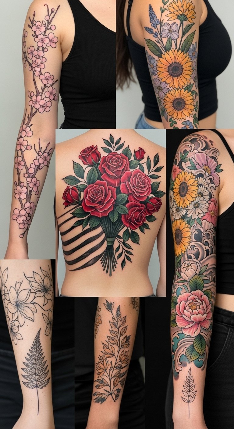 Elaborate Mixed Floral Tattoos
