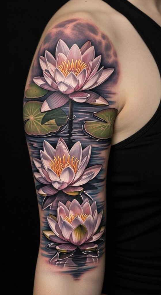 Water Lily Tattoos for Motherhood and Devotion