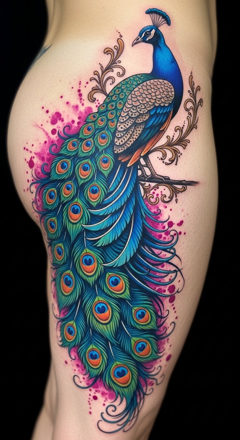 Imagine showcasing a kaleidoscope of colors on your skin, each feather telling a story of individuality. A peacock tattoo not only captures attention but also embodies your desire for self-expression and the celebration of life’s vivid moments.