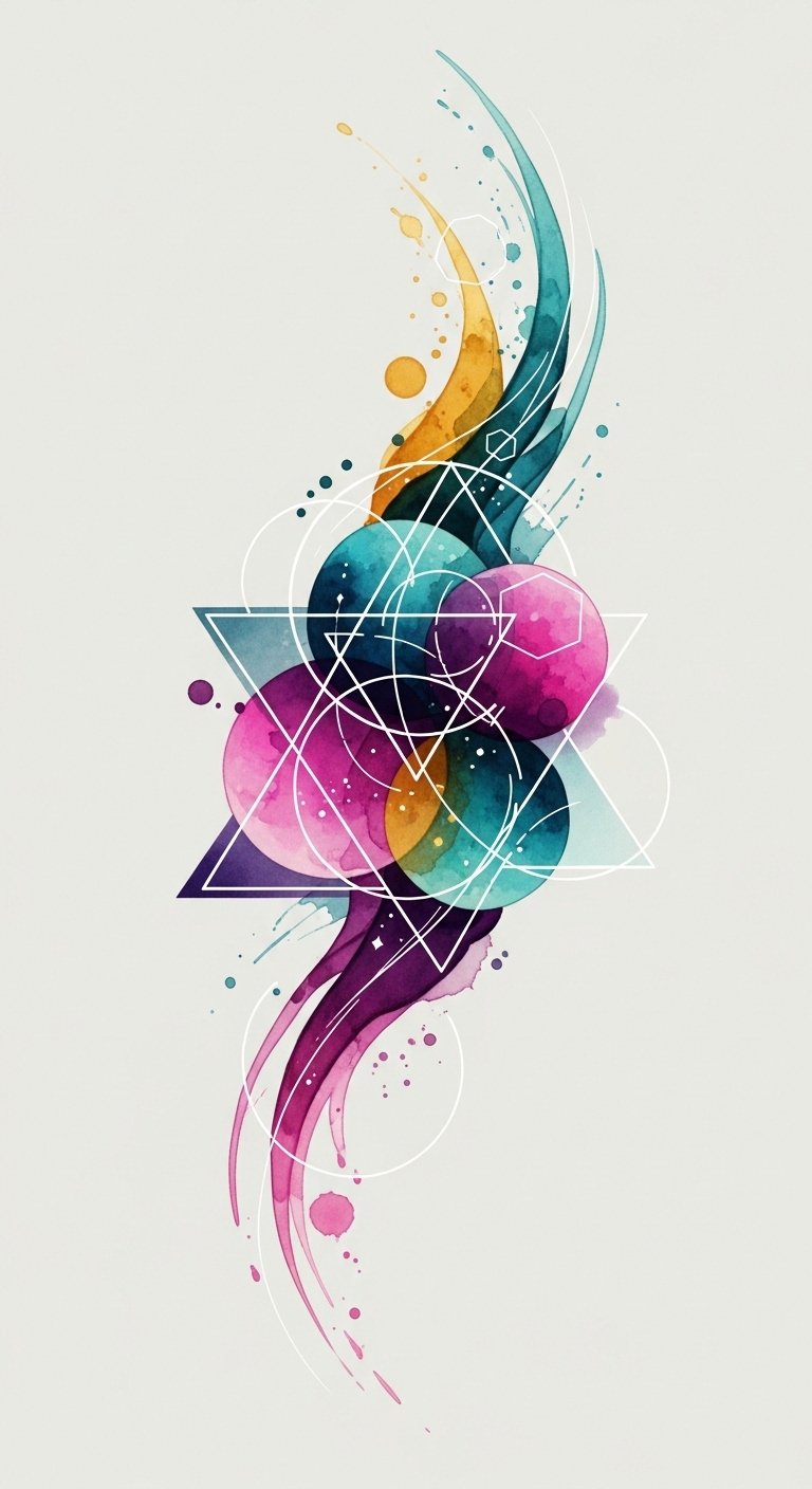 With every brushstroke, you’ll express the freedom and creativity that resides within your soul. Symbolically, the interlocking shapes represent the balance between structure and spontaneity, the colors evoke emotional depth and transformation, and the flowing paint suggests personal evolution; emotionally it reads as liberating and introspective, suited for placements like the forearm, shoulder blade, or ribcage where movement enhances the sense of fluidity.
