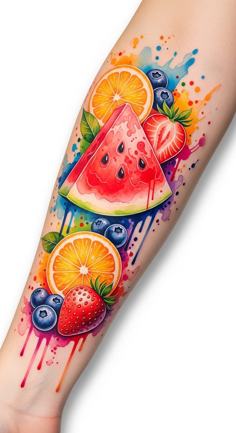 When you think of vibrant watercolor tattoos, colorful fruits can add a playful and rejuvenating twist to your body art.