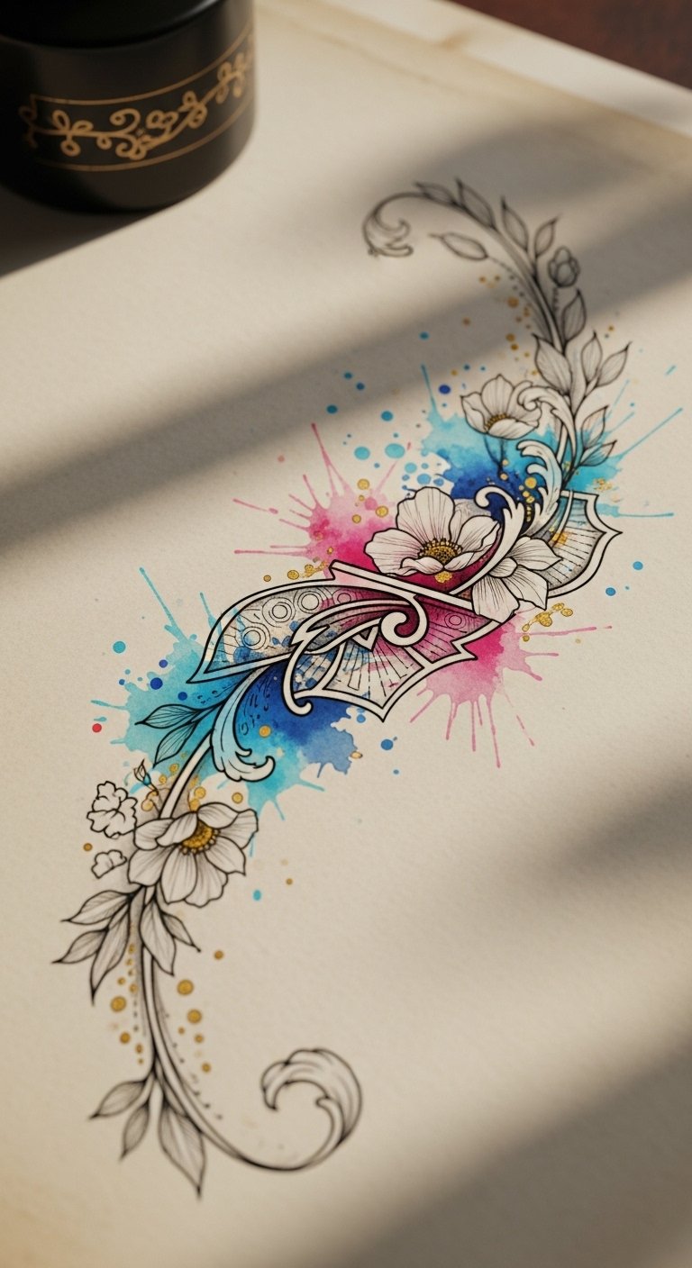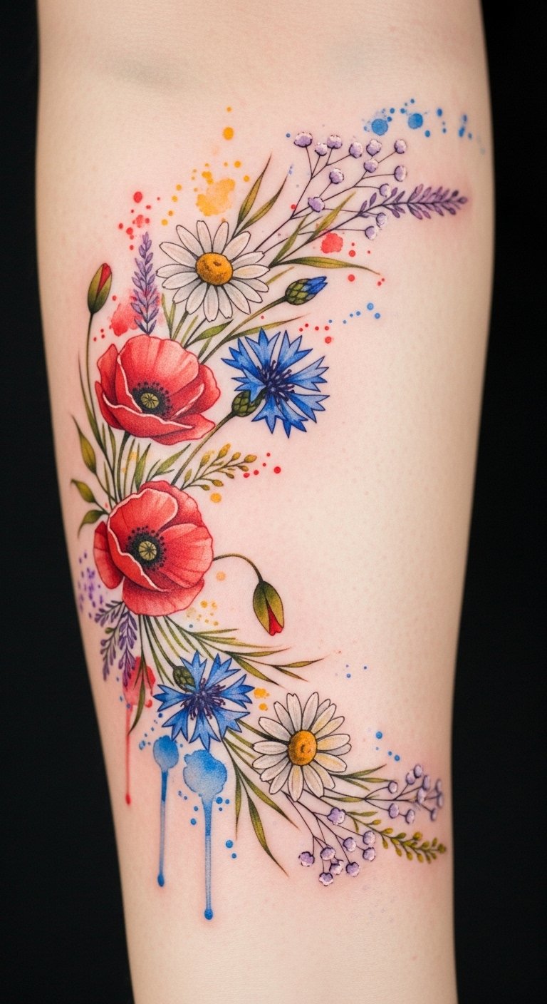 With watercolor tattoos, you can capture this essence, showcasing delicate petals and bold colors that dance across your skin, reminding you daily of the untamed spirit that thrives within you.