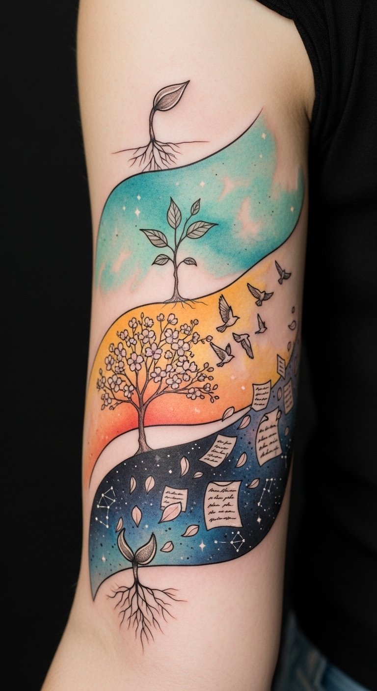 These tattoos become a canvas of your innermost feelings, allowing you to express your unique journey in an enchanting, free-spirited way.