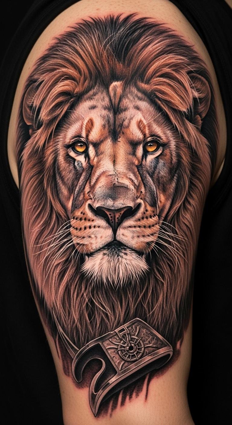Majestic lion portraits symbolize inner strength, courage, independence, and a longing for freedom; emotionally they evoke pride, resilience, and a noble calm, making them suited for placements where the wearer wants to project protection and confidence—upper chest or sternum for closeness to the heart, back or shoulder blade for a larger, adventurous composition, and forearm or calf for visibility and daily encouragement.
