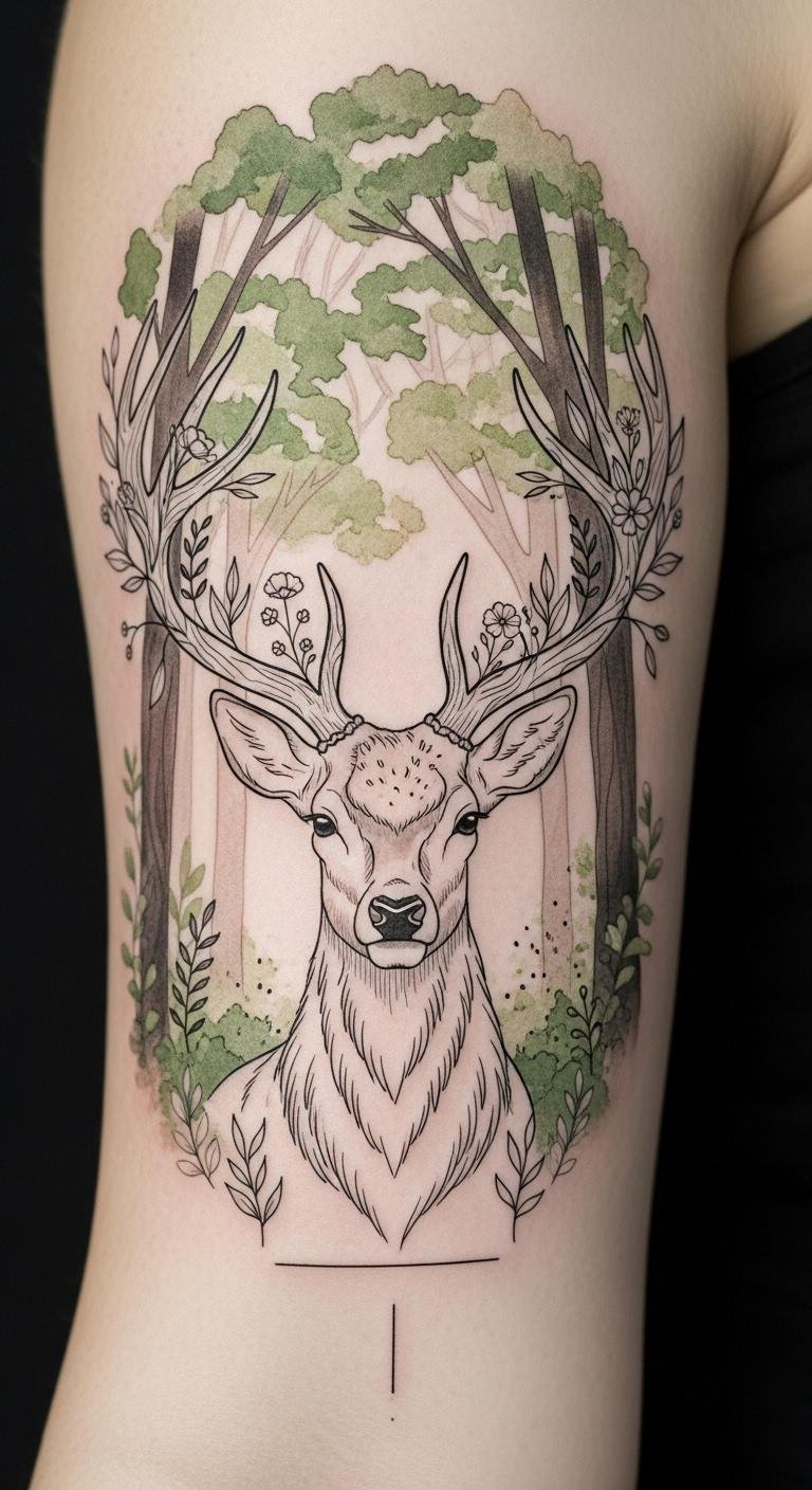 These tattoos capture stunning stag symbolism, celebrating strength and natural elegance.