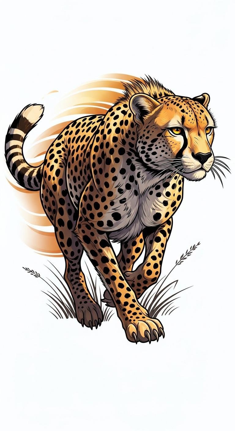 This design evokes exhilaration and focused determination, ideally placed along the forearm, calf, or ribcage to follow muscle lines and convey motion; it symbolizes personal resilience, swift progress, and a commitment to preserving natural beauty.