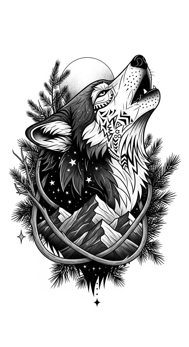From stunning wolf art to intricate tattoo styles, each design reflects cultural significance and conservation awareness, embodying the powerful meanings that resonate with your adventurous soul. This tattoo concept channels those meanings into a visual that evokes protection, unity, and wild freedom; emotionally it balances raw intensity (the howl, sharp lines) with serenity (moonlit backdrop, flowing branches).