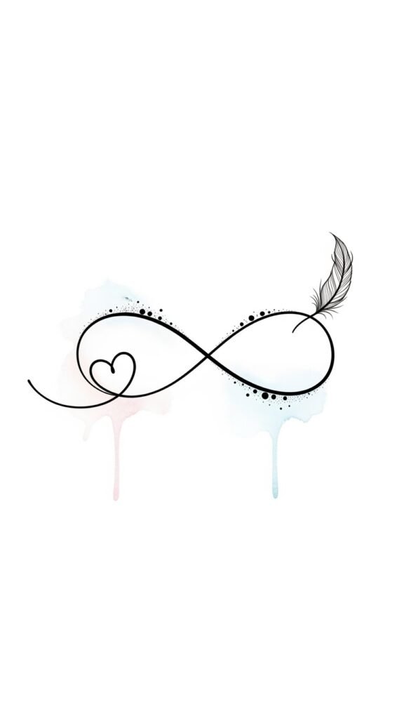 Explore different styles to find one that resonates with your personal infinity meanings! The combined heart and feather elements add layers of emotional resonance—heart for enduring love and feather for freedom and lightness—while the pastel wash introduces a soft, personal touch that feels intimate and hopeful.