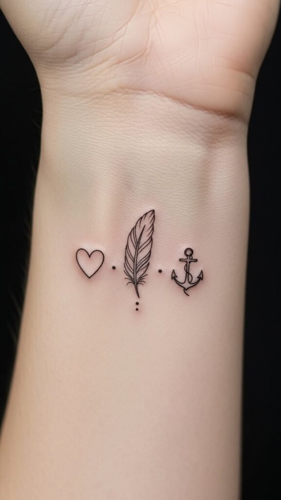 Embracing minimalist tattoo trends, these designs convey powerful simple design meanings. A tiny heart, a delicate feather, or an anchor can express freedom and strength without overwhelming your wrist.