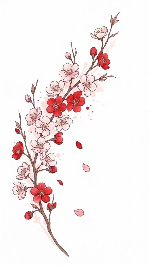 These delicate blooms symbolize the beauty of life’s fleeting moments, whispering a reminder to embrace change and cherish every experience; the soft pinks, whites, and reds evoke renewal and freedom while the falling petals suggest movement and transience, making this design emotionally resonant for placements like the wrist for a personal reminder, the forearm for visible affirmation, or the shoulder for a more intimate, contemplative statement.