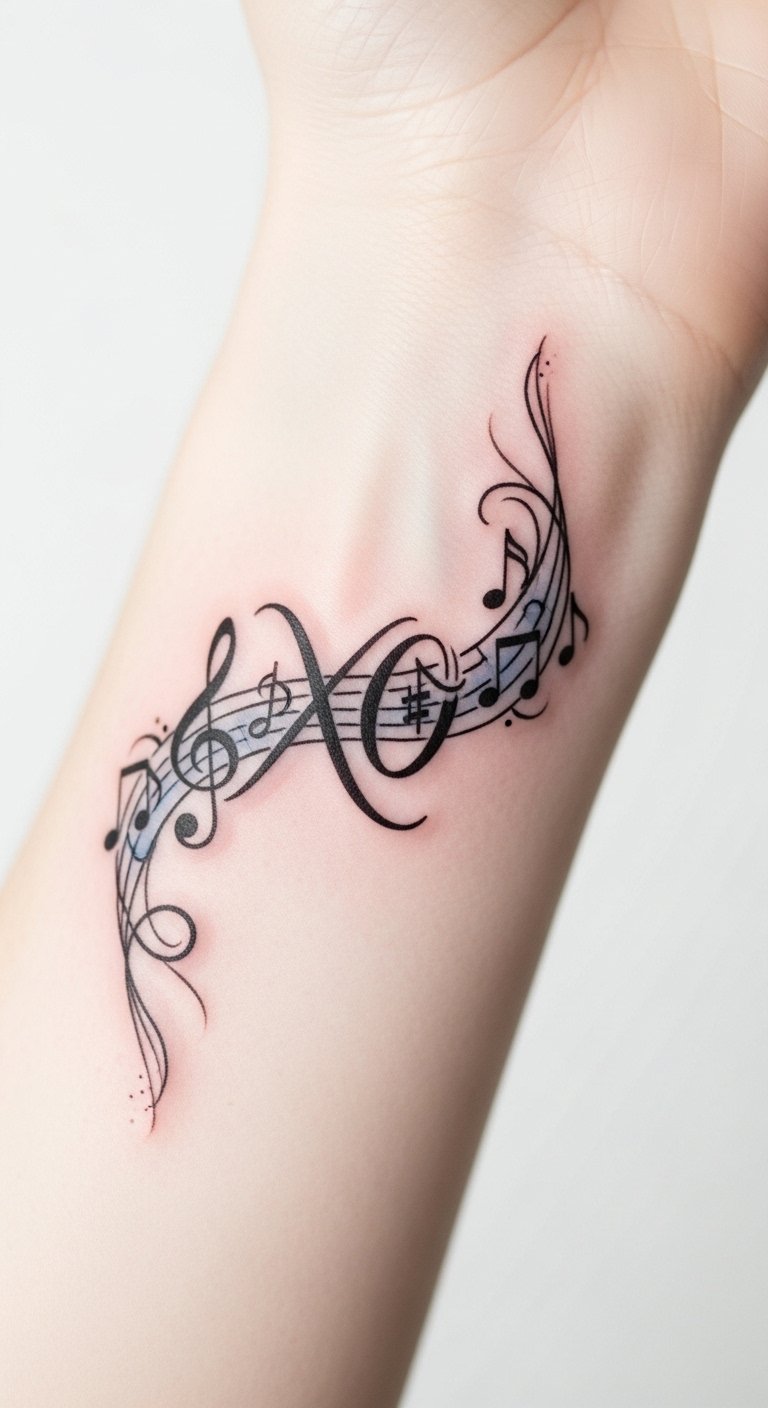 This tattoo design is rich in musical symbolism, making it perfect for music lovers.