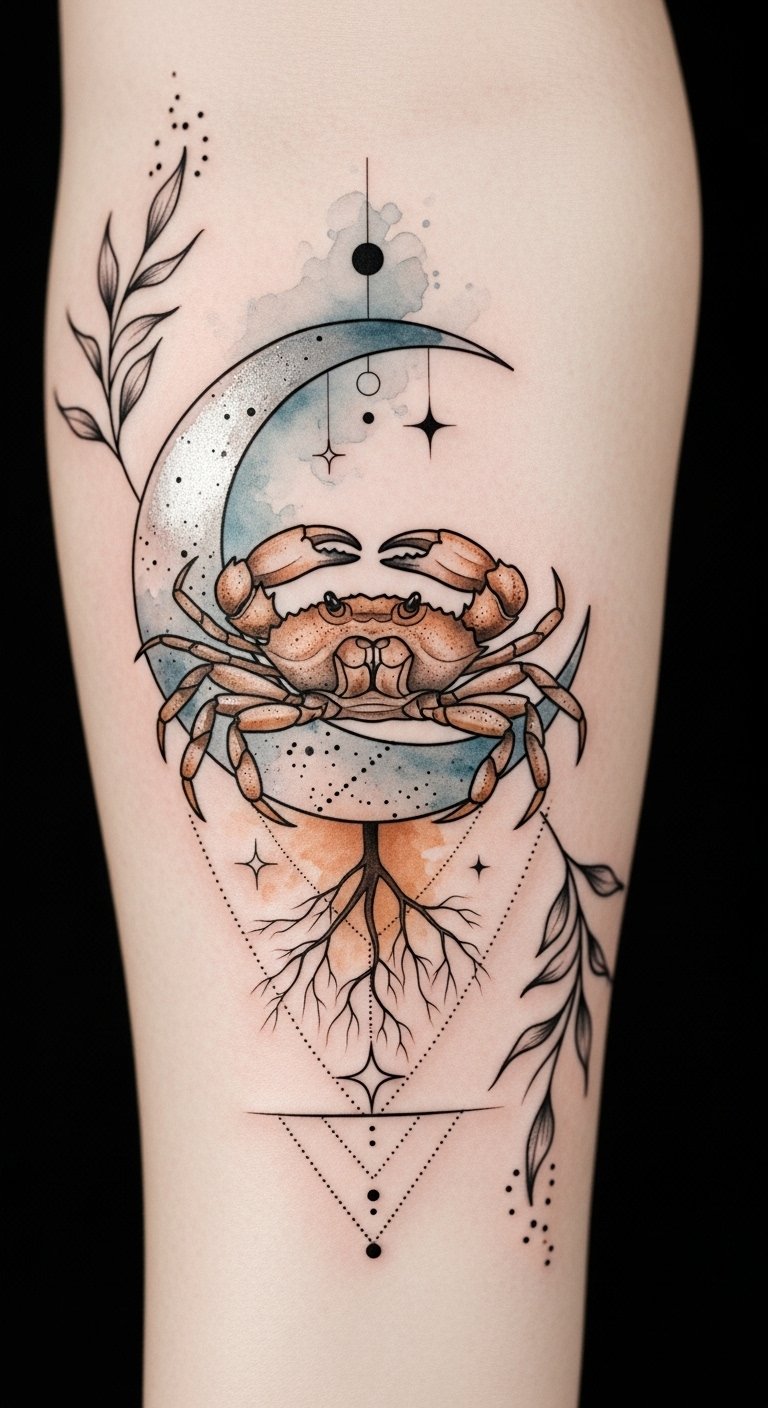 As you explore the depths of your emotions, Cancer tattoos embody the intricate balance between your inner feelings and the material world.