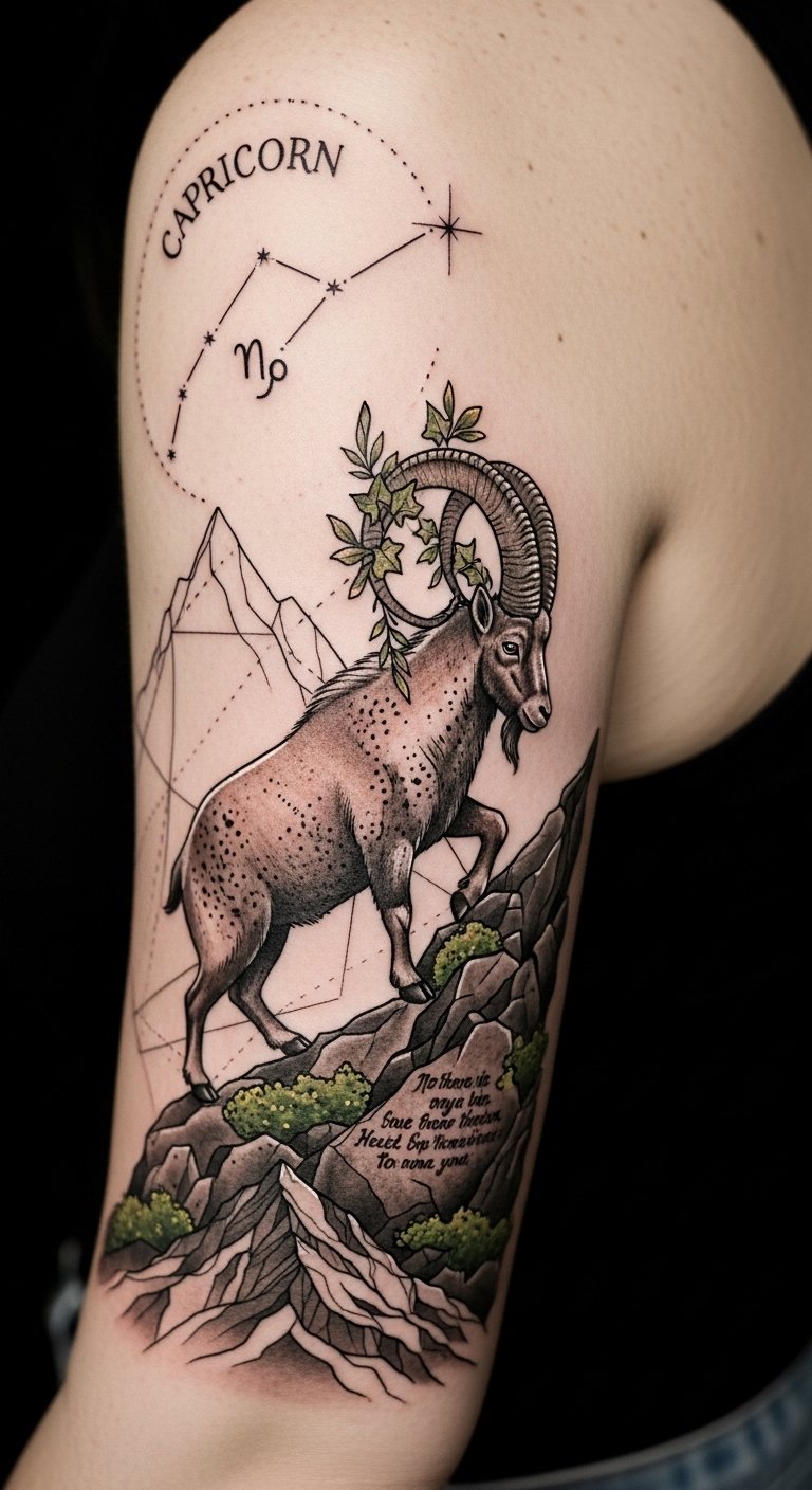 Explore stunning Capricorn tattoo styles featuring the constellation, earthy colors, and symbols of growth. Embrace their mythology and quotes, celebrating a legacy of ambition and compatibility.
