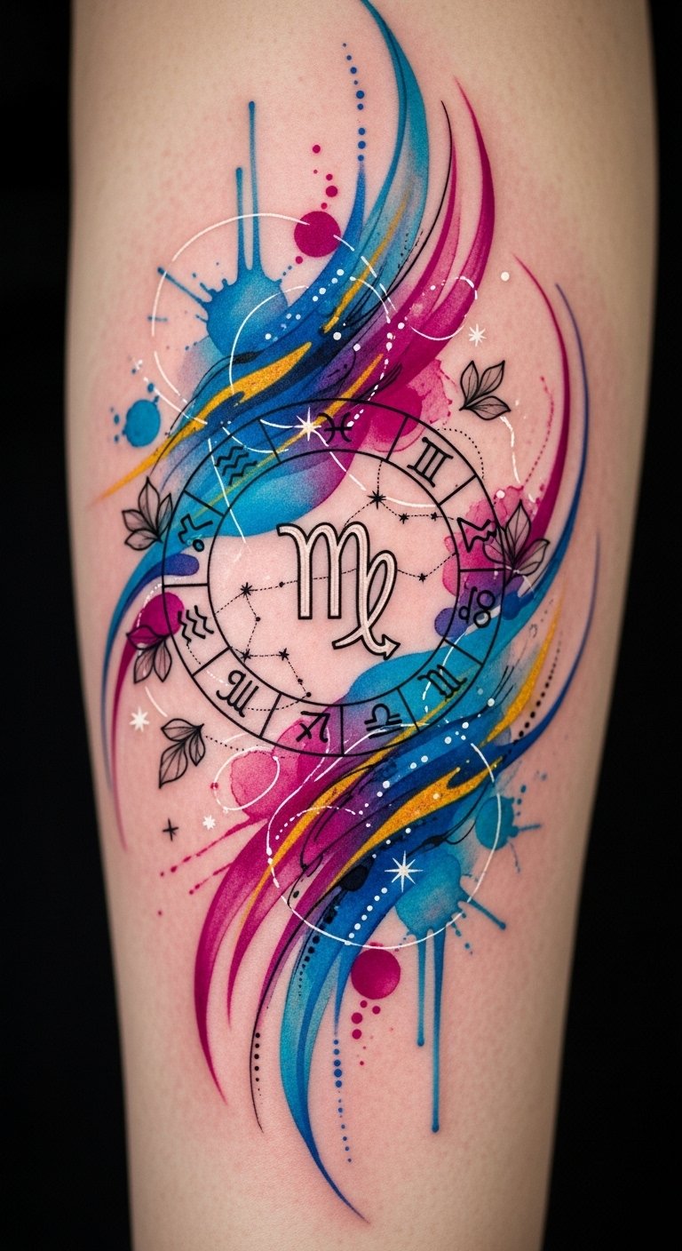 Watercolor Zodiac Tattoos for a Vibrant Touch
