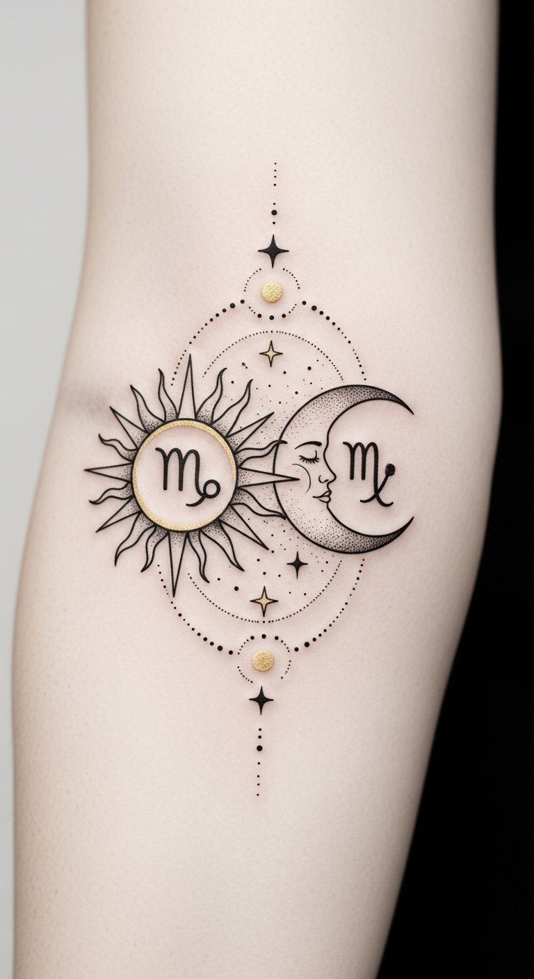 Dual Zodiac Tattoos: Sun and Moon Signs