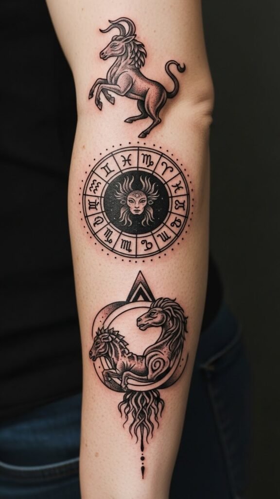 Embrace goat mythology and showcase your Zodiac determination with ambitious designs, representing the essence of your Capricorn personality beautifully.
