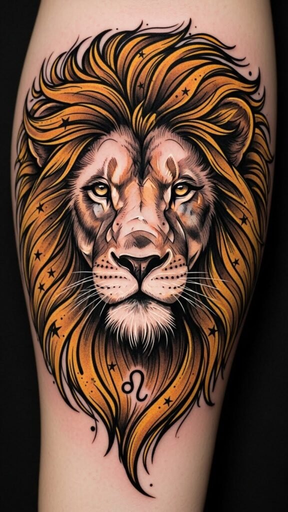 Embrace the lion’s strength, embodying courage and leadership. Each detail in your tattoo reflects your vibrant spirit, reminding you to shine brightly.